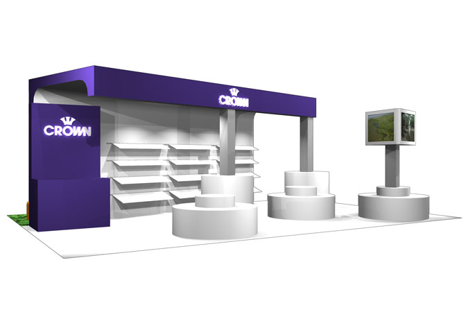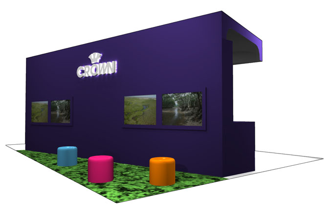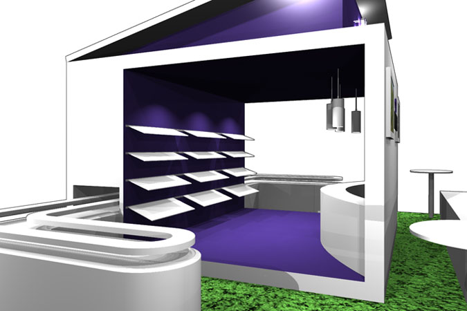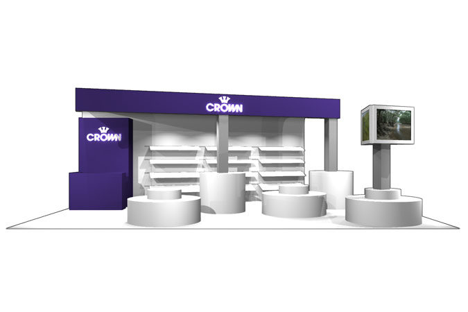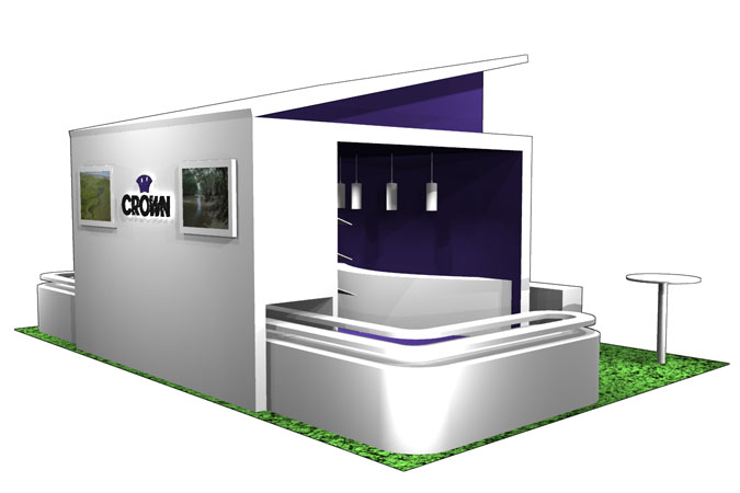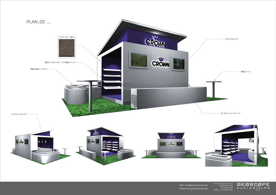 メーカーよりイベントブースの提案依頼があり二案を提案。オープンタイプはスタンダードプラン。ボックスタイプは断面にクラフトを使用し素材を全面に出したプラン。